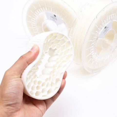 Filament ColorFabb varioShore TPU w zależności od temperatury i przepływu materiału (prędkość i wysokość warstwy) można zmieniać gęstość materiału.
