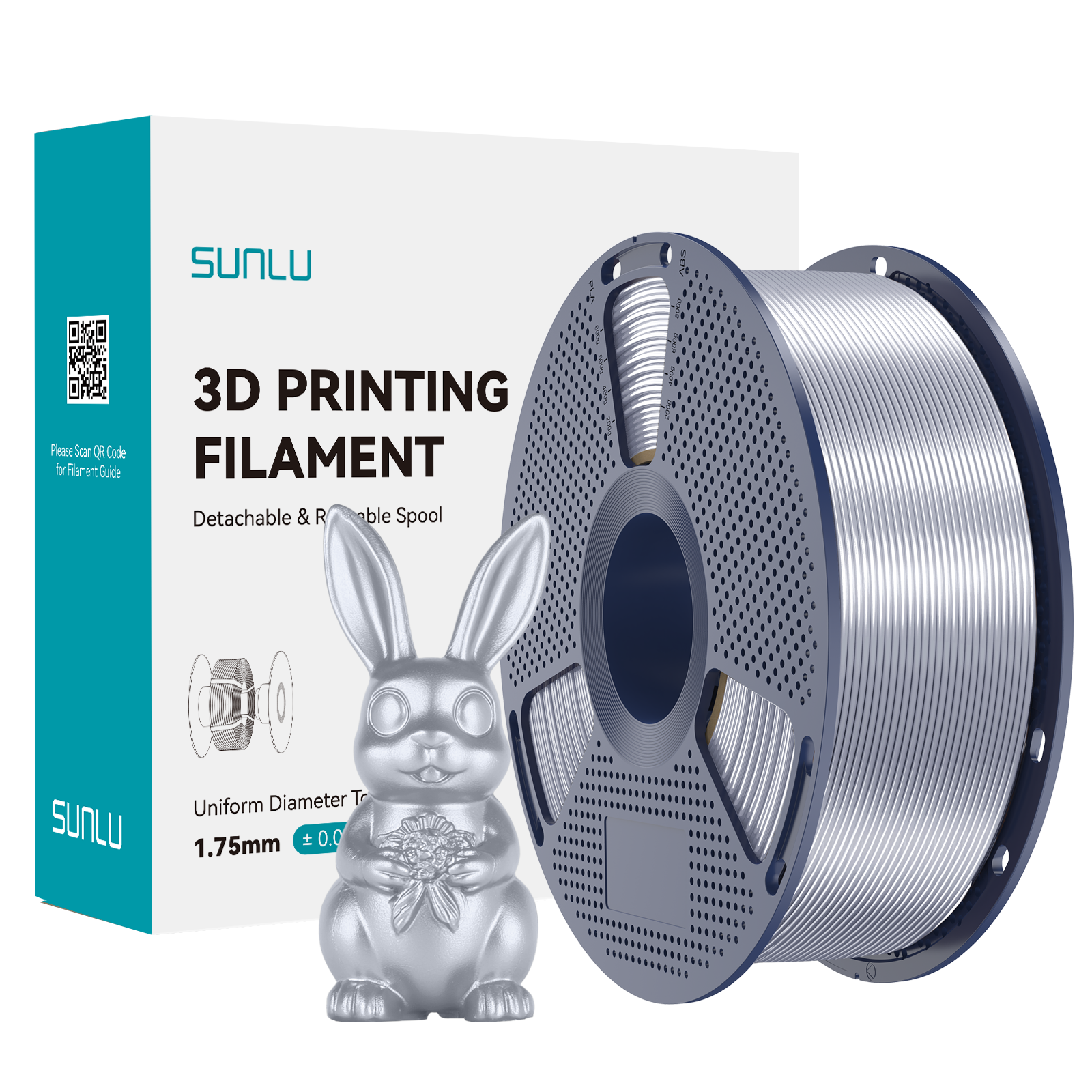 - Wysokiej jakości filament do drukarek 3D, wyprodukowany przez SUNLU. 1 kg filamentu PLA o średnicy 1.75mm nawinięty na szpuli. Kolor: SILK Silver / Srebrny, jedwabny o pięknym połysku