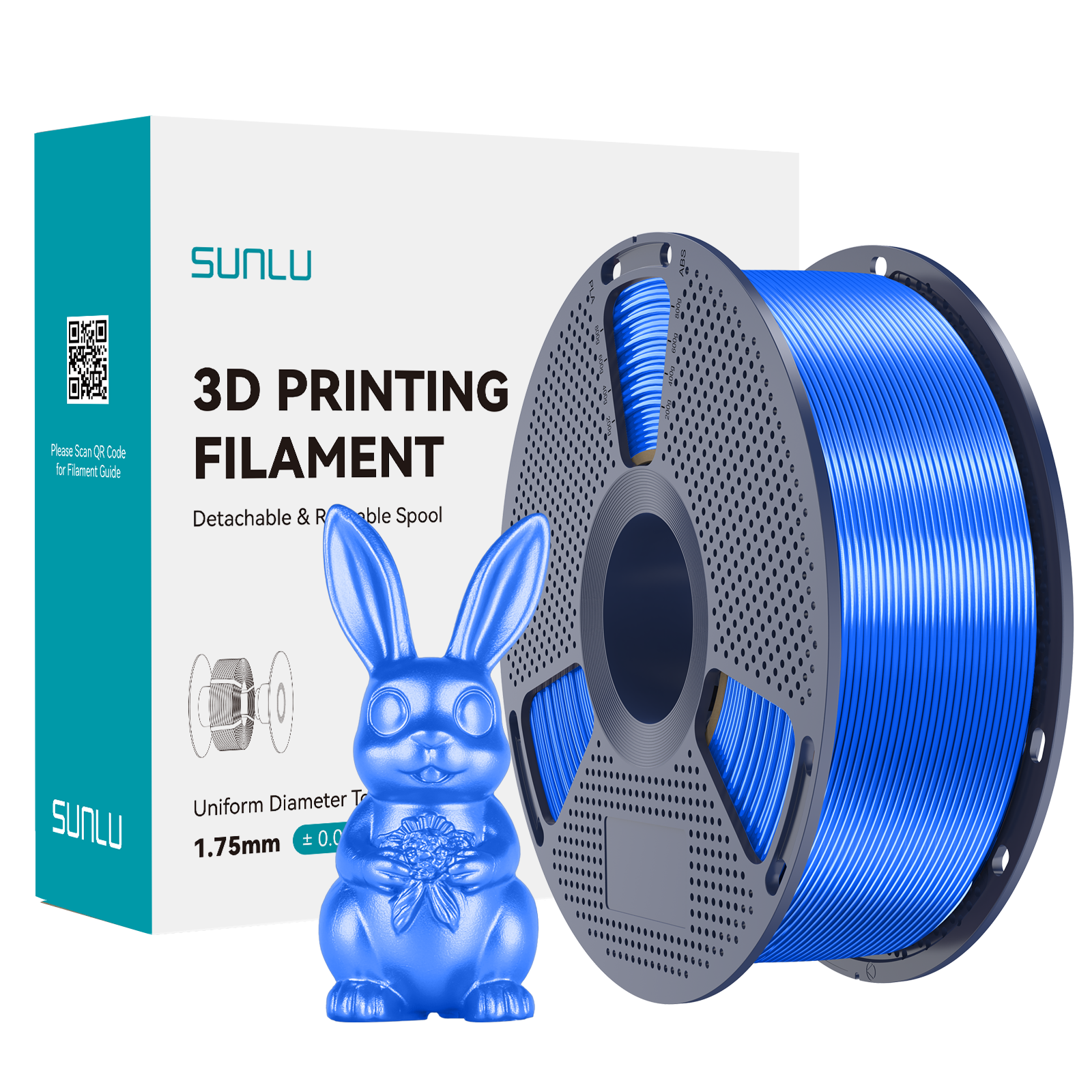 - Wysokiej jakości filament do drukarek 3D, wyprodukowany przez SUNLU. 1 kg filamentu PLA o średnicy 1.75mm nawinięty na szpuli. Kolor: SILK Blue / Niebieski jedwabny o pięknym połysku