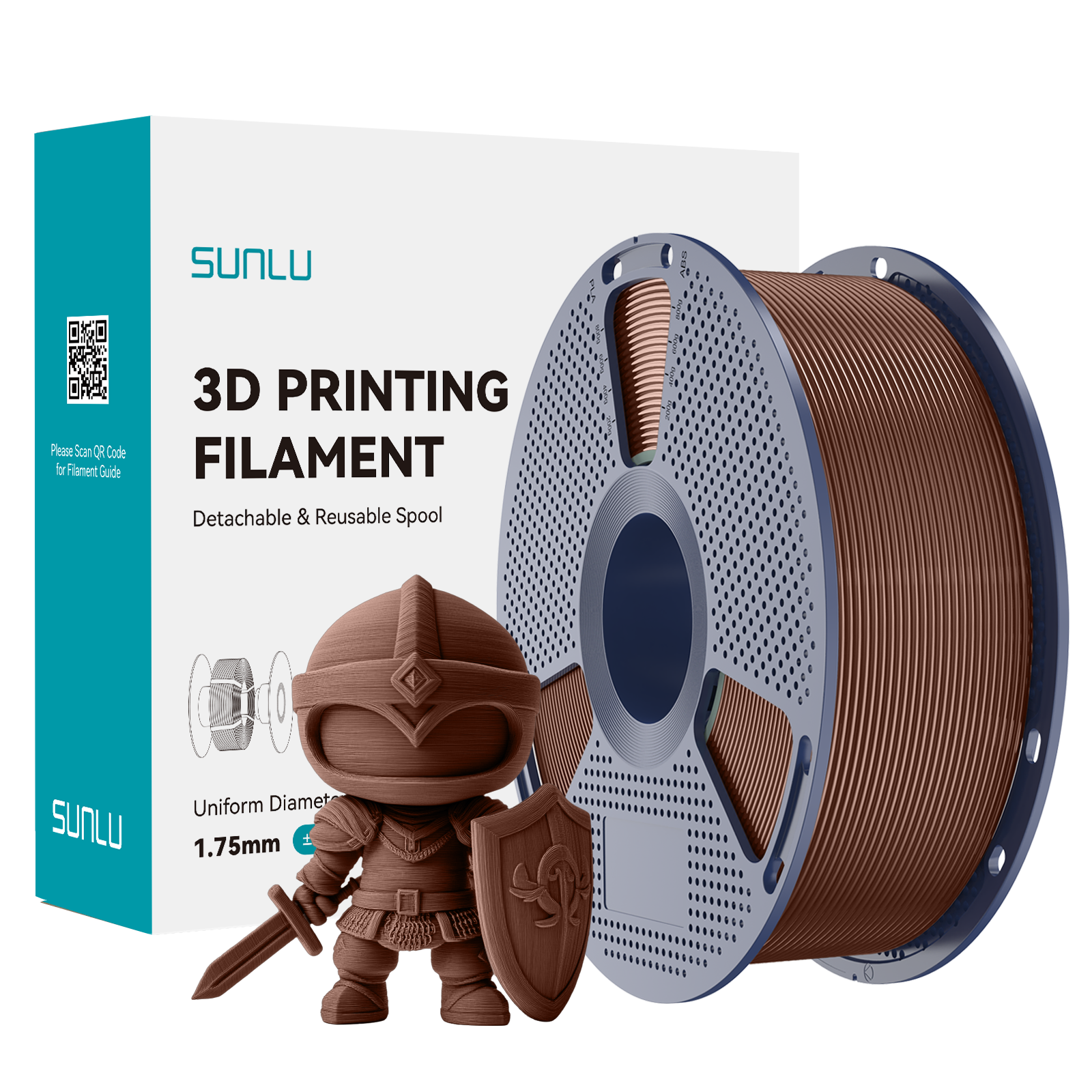 - PLA+ 2.0 to ulepszona wersja filamentu PLA, wyprodukowana przez SUNLU. 1 kg filamentu PLA+ o średnicy 1.75mm nawinięty na szpuli. Kolor: Chocolate / Brązowy, czekoladowy