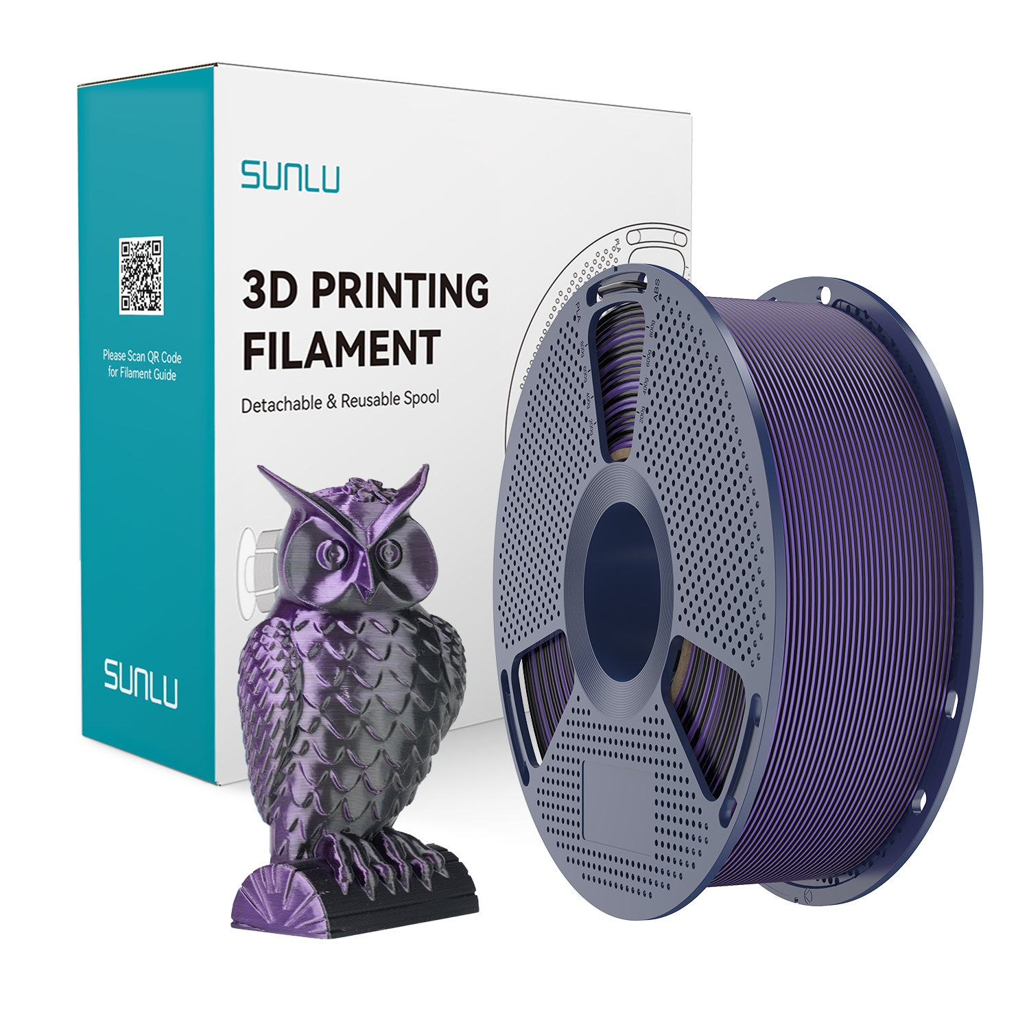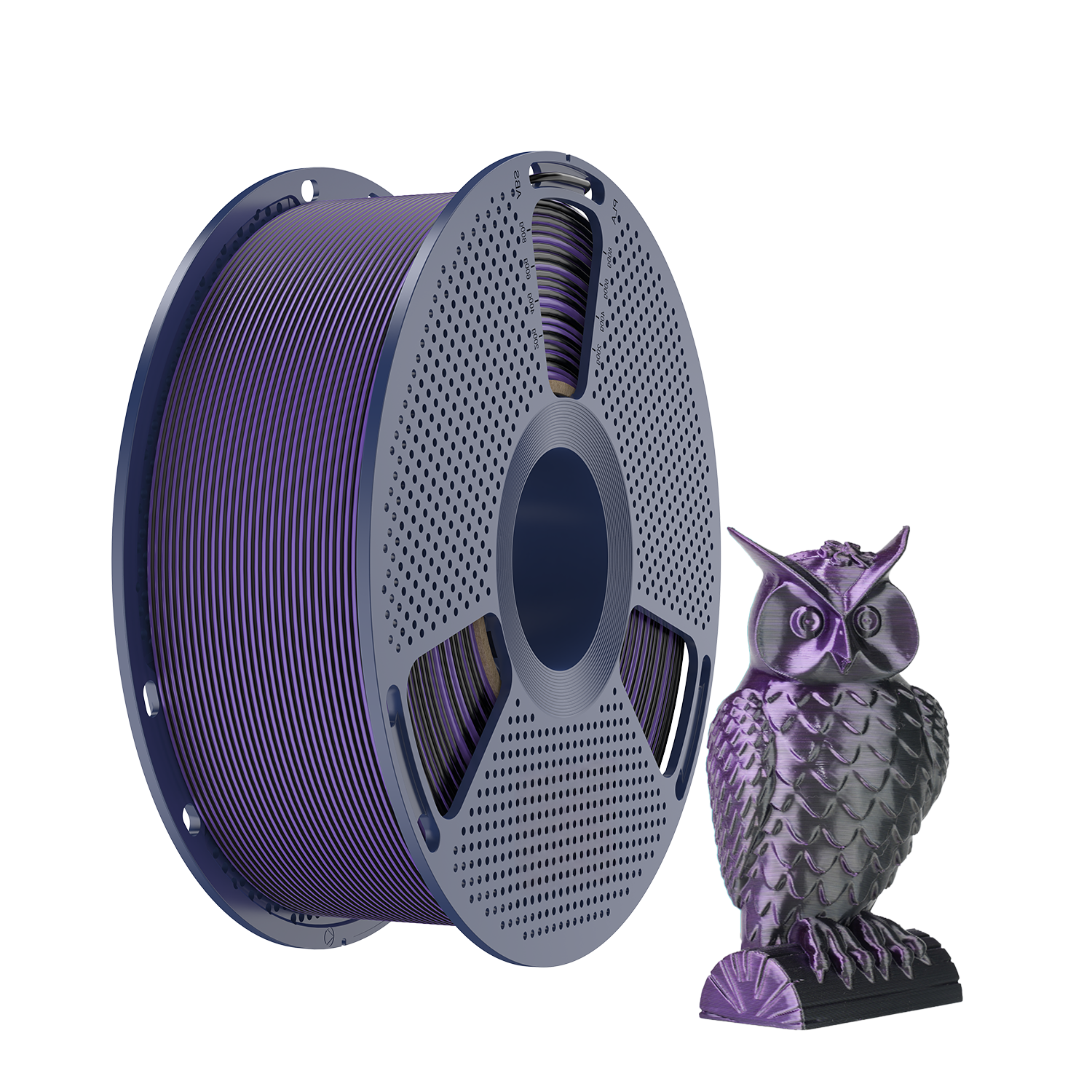 SUNLU SILK PLA+ Dual Color to wyjątkowy filament powstały z połączenia 2 kolorów SILK PLA+ na całej długości filamentu. Pozwala to uzyskać wydruki o niespotykanym efekcie wizualnym. Wydruk zdaje się mieć inny kolor z różnych perspektyw.