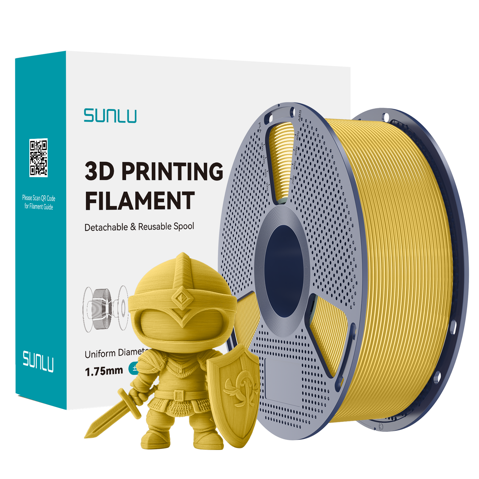 • Wysokiej jakości filament do drukarek 3D, wyprodukowany przez SUNLU. 1 kg filamentu PLA o średnicy 1.75mm nawinięty na szpuli. Kolor: Gold / Złoty