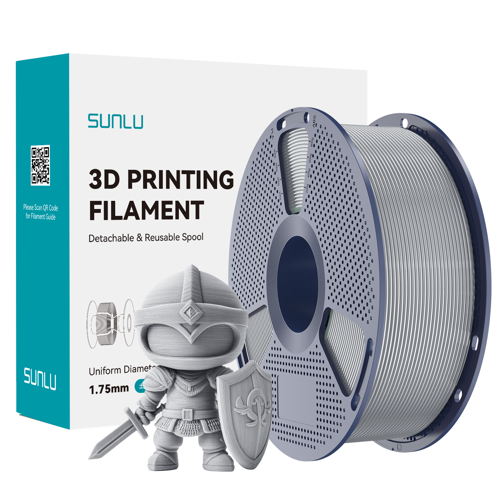 - Wysokiej jakości filament do drukarek 3D, wyprodukowany przez SUNLU. 1 kg filamentu PLA o średnicy 1.75mm nawinięty na szpuli. Kolor: Silver / Srebrny