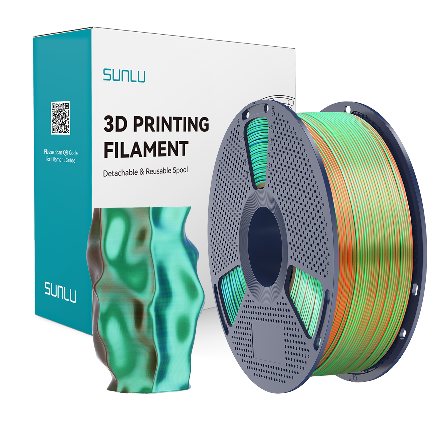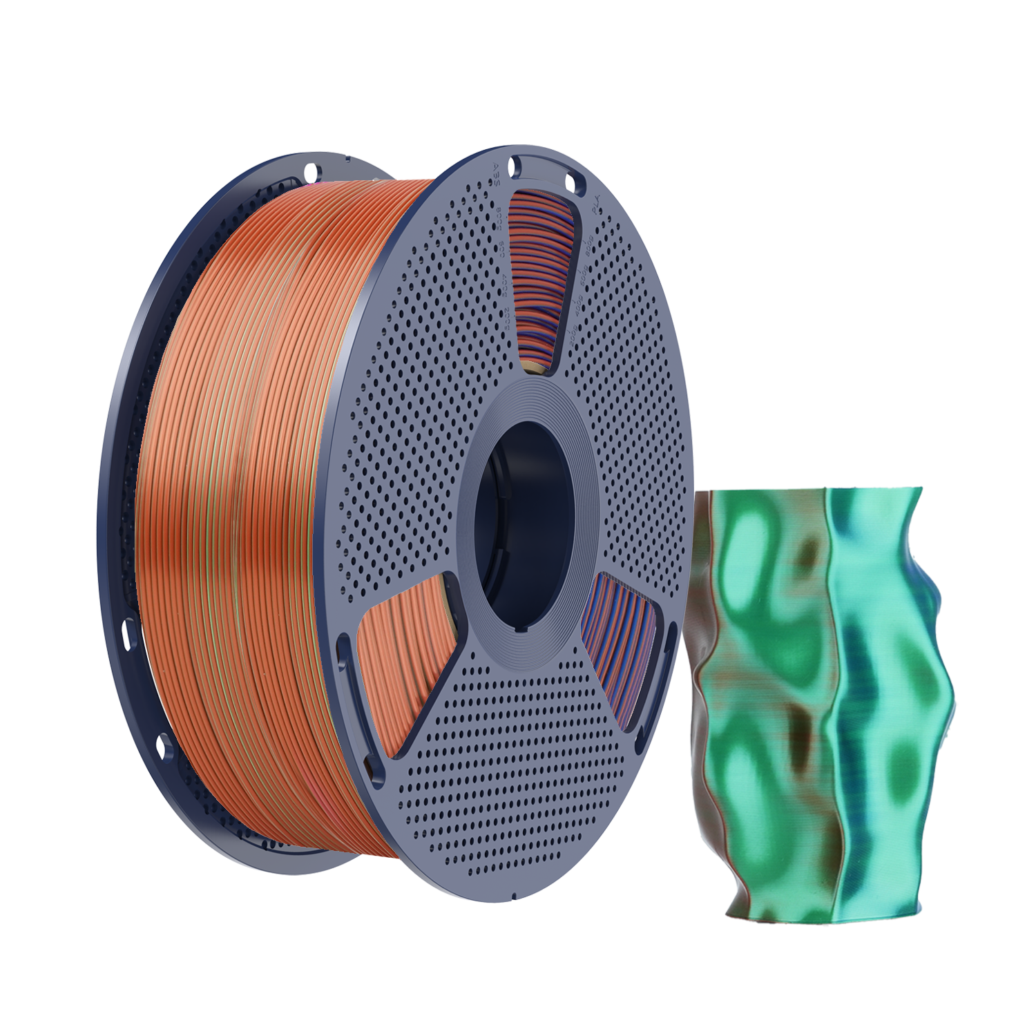 SUNLU SILK PLA+ Dual Color to wyjątkowy filament powstały z połączenia 2 kolorów SILK PLA+ na całej długości filamentu. Pozwala to uzyskać wydruki o niespotykanym efekcie wizualnym. Wydruk zdaje się mieć inny kolor z różnych perspektyw.